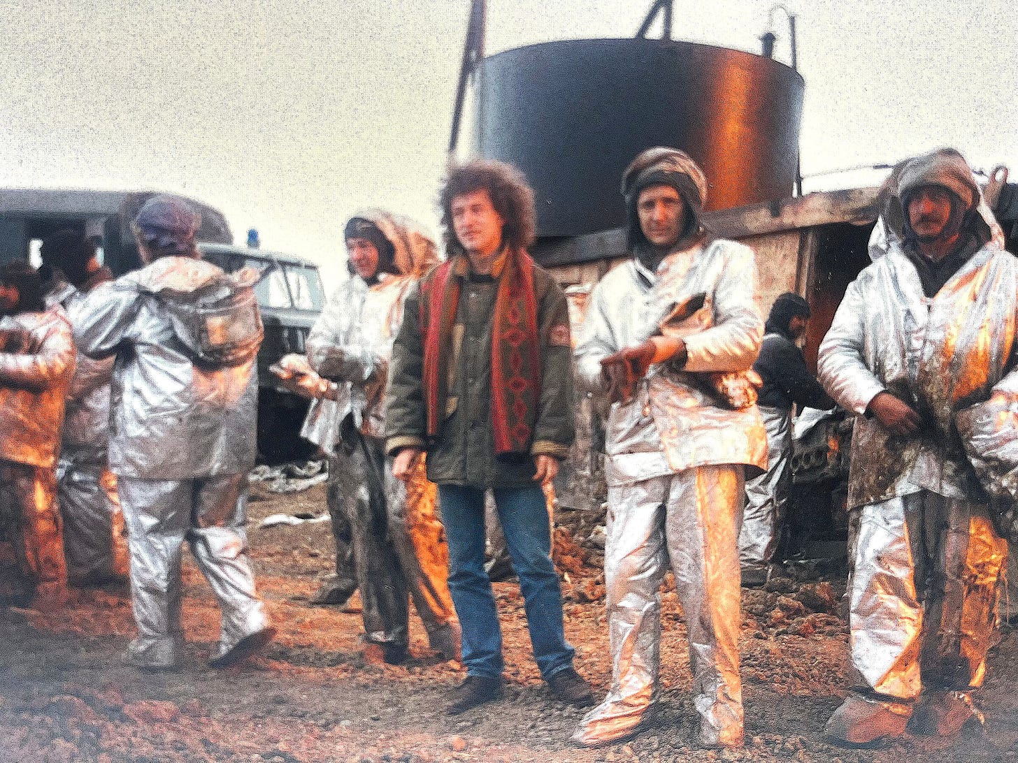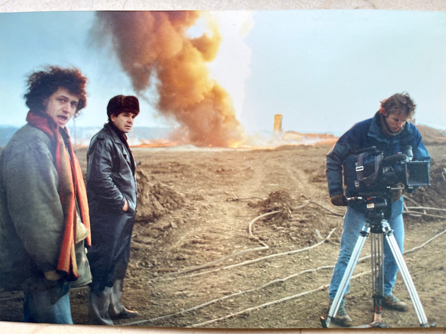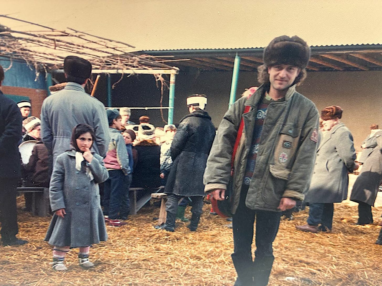 Filmând în războiul cecen... Personajul din stânga nu este Helena Bonham Carter... Sunt eu.