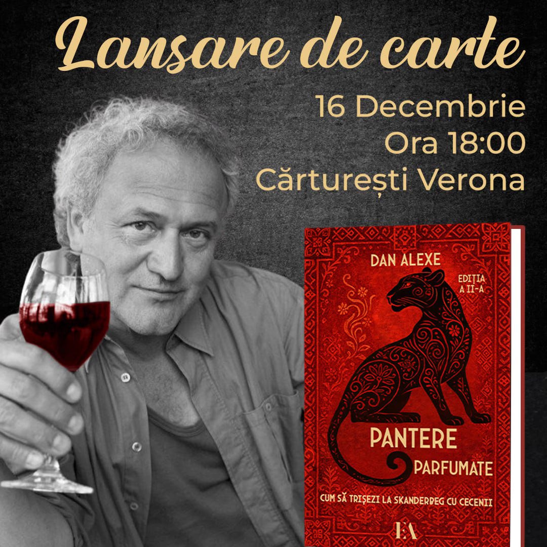Dan Alexe vine cu Pantere parfumate — ediția a doua, adică volumul acela care a supraviețuit primei întâlniri cu cititorii și a cerut, obraznic, încă o tură. O carte despre cum să trișezi la skanderbeg cu cecenii, despre Caucaz mirosind a busuioc, praf de pușcă, legendă, și femei, despre felul în care istoria reală e mult mai absurdă decât orice ficțiune cumințică.